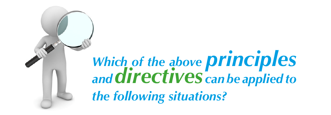 - According to principle/directive xxx, are the following situations moral or not? Why?
