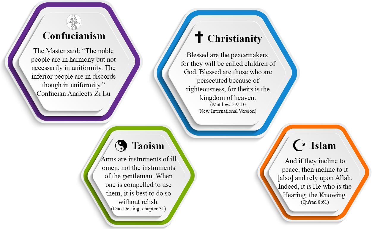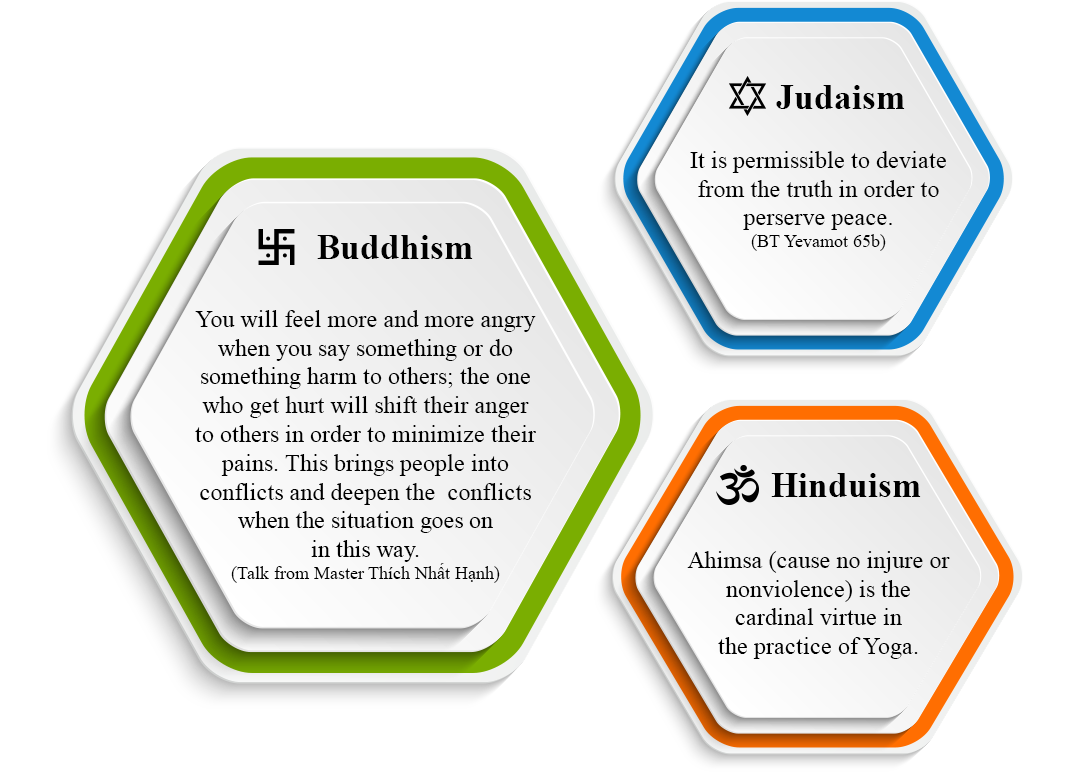 - Many religious and ethical traditions often offer teachings and dogmas for men and women. These teachings and dogmas contain important values, such as respect, tolerance, sympathy, forgiveness, and reconciliation etc. We are suggested to develop good values —— respect others, tolerate dissent and to live in justice from an early age, thereby long lasting peace could be achieved.